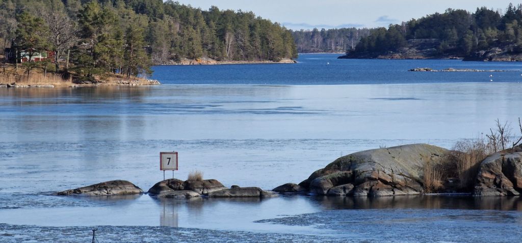 Häromdagen hade det mesta av isen försvunnit, men så igår frös det på igen. Sådana dagar nu, när väder växlar snabbt från varmt till kallt.