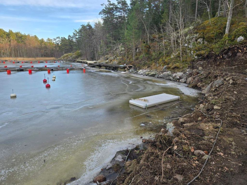Bryggor görs i ordning i hamnen och som synes, är det svårt att ta sig fram i nuläget.