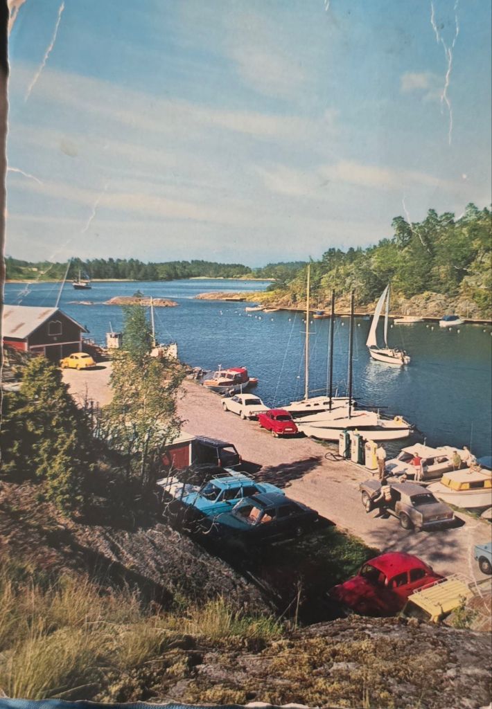 Vykort från privat ägo med motiv över Gryts Bryggas hamn.